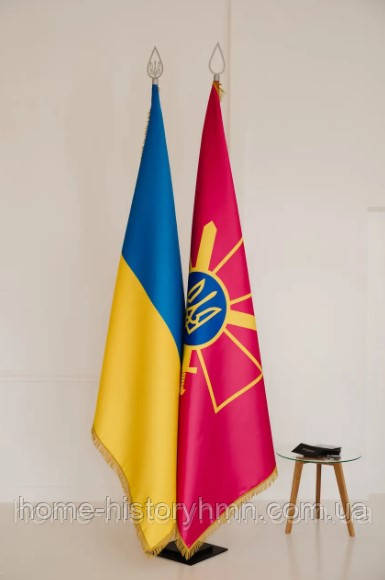 - Прапор ЗСУ: розмір прапора 1400/2000 мм, тканина атлас королівський з бахромою - ціна 3500 грн