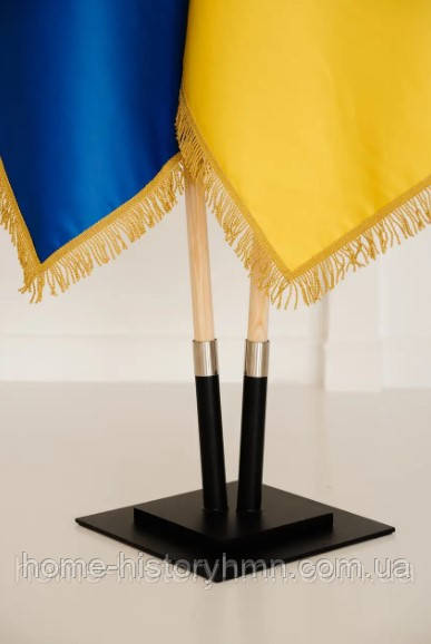 Держатель квадратної форми на два прапори, виконаний з нержавіючої сталі, забезпечує міцне кріплення та стійкість. Два древка довжиною 2.5 м забезпечують достойну підтримку прапорам під час показу.